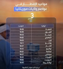 أوقات إفطار السبت ثالث أيام رمضان في عموم موريتانيا