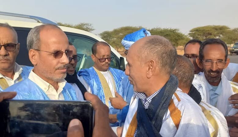 نظم حلف محمد ولد أحمد سالم ولد محمد راره استقبالا لرئيس حزب الإنصاف السيد ماء العينين ولد أييه والوفد المرافق له على مشارف مدينة الطينطان في إطار التحضيري الجاري للزيارة المرتقبة لرئيس الجمهورية السيد محمد ولد الشيخ الغزواني لمقاطعة لعيون الجمعة القادم.