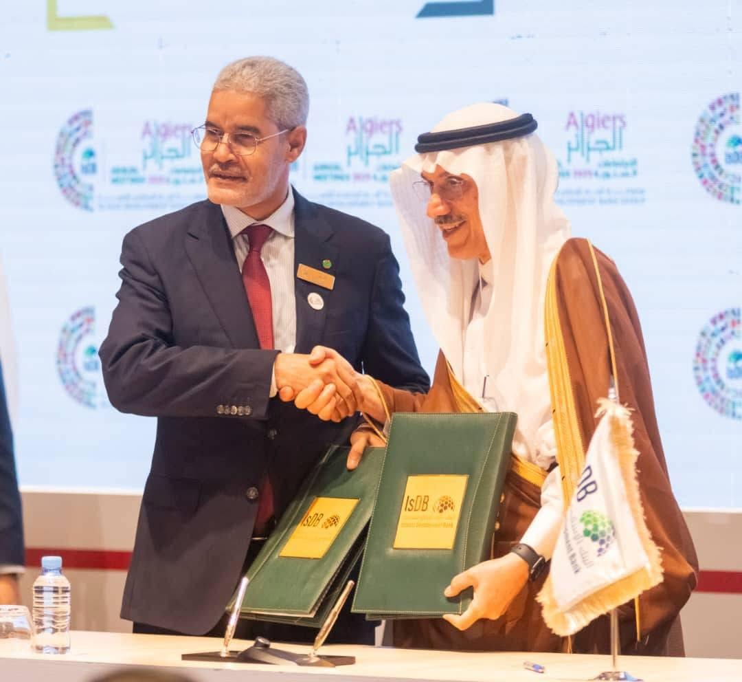 وقعت موريتانيا والبنك الإسلامي للتنمية، اليوم الأربعاء، اتفاقية تمويل بقيمة 36 مليون يورو، وذلك على هامش الاجتماعات السنوية لمجموعة البنك الإسلامي للتنمية المنعقدة في الجزائر.