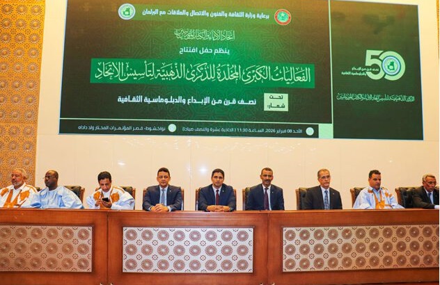 وأضاف أن هذه الخمسينية تتزامن مع العناية الخاصة التي يوليها فخامة رئيس الجمهورية، السيد محمد ولد الشيخ الغزواني، للثقافة، باعتبارها ركيزة أساسية للتنمية، وهي الرؤية التي تعمل حكومة معالي الوزير الأول، السيد المختار ولد اجاي، على تجسيدها لدعم الفعل الإبداعي.