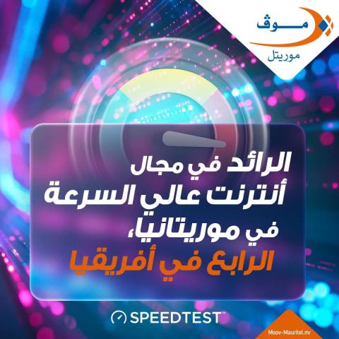 تواصل موف موريتل ترسيخ مكانتها كالرائدة في جودة الاتصال بالإنترنت في موريتانيا، مؤكدة حضورها القوي إقليمياً بحلولها في المرتبة الرابعة أفريقياً في الإنترنت الثابت وفق تصنيف Speedtest by Ookla.