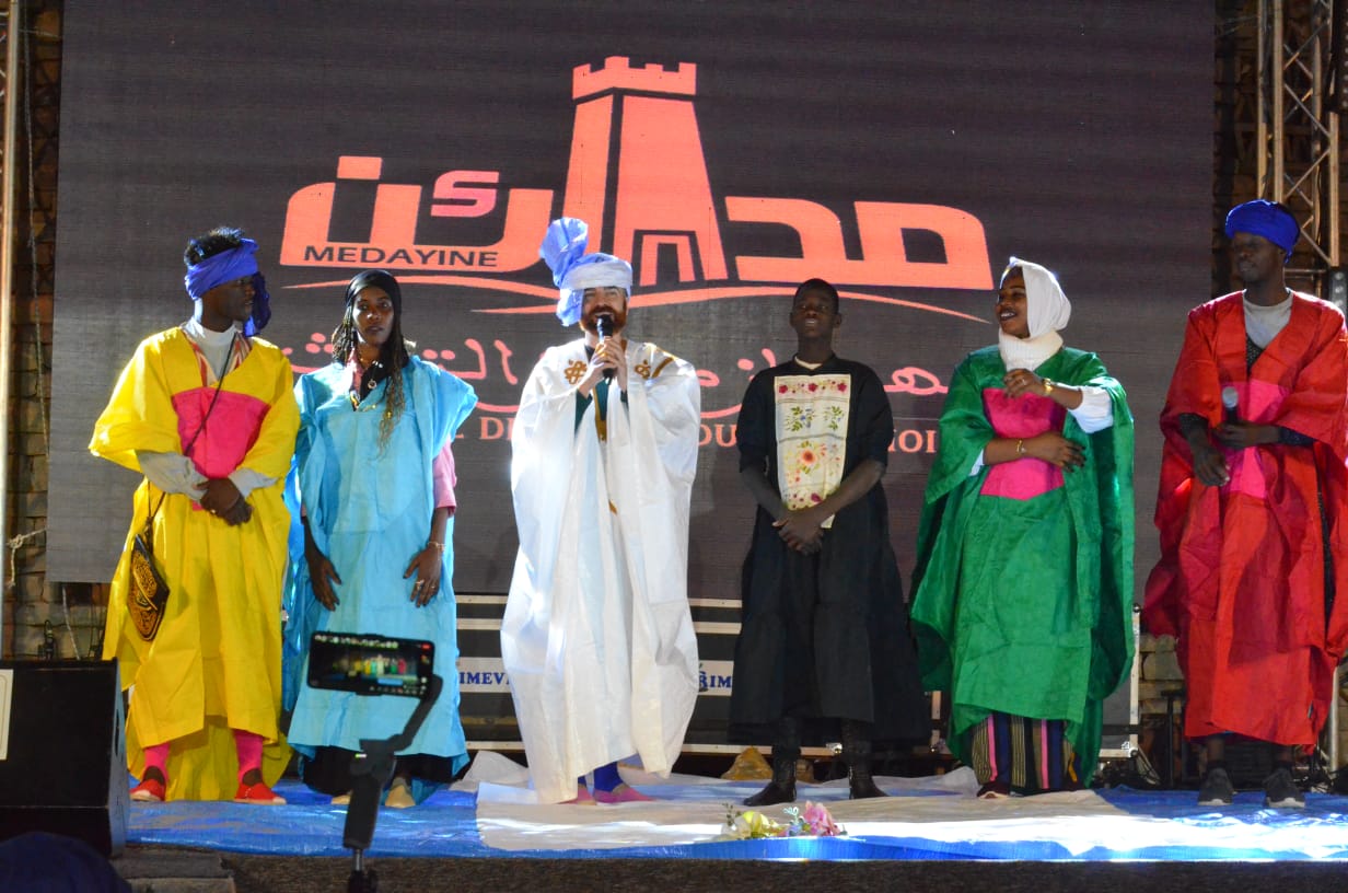 حضر رئيس الجمهورية محمد ولد الشيخ الغزواني والسيدة حرمه الدكتورة مريم بنت الداه إلى جانب وزير الثقافة محمد ولد اسويدات وعدد من أعضاء الحكومة وكبار المسؤولين الأمسية الافتتاحية للنسخة ال 11 من مهرجان مدائن التراث.