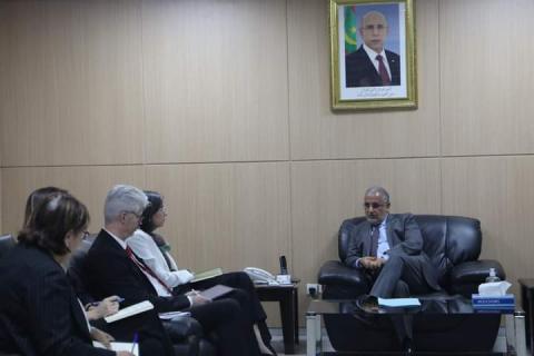 معالي المندوب العام تحدث للبعثة الزائرة خلال استقباله لها بمكتبه عن أهم برامج المندوبية العامة للتضامن الوطني ومكافحة الإقصاء "التآزر" ومشاريعها، كما قدم لها كل من المنسق الوطني لبرنامج التكافل السيد مولاي الحسن ولد زيدان والمدير العام للسجل الاجتماعي السيد أحمد سالم ولد بد خلال جلسة العمل التي عقد الطرفان في قاعة الاجتماعات عرضين عن برامج المندوبية العامة والسجل الاجتماعي.