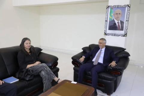 عقد مفوض حقوق الإنسان والعمل الإنساني والعلاقات مع المجتمع المدني السيد سيد أحمد ولد بنان اليوم الاربعاء بنواكشوط ، لقاء عمل مع السيدة تريزا آلبيرو، ممثلة مكتب المفوضية السامية للأمم المتحدة لحقوق الإنسان في بلادنا ،