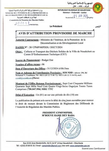 وشح معالي وزير الداخلية وترقية اللامركزية والتنمية المحلية، السيد محمد أحمد ولد محمد الأمين ، باسم فخامة رئيس الجمهورية السيد محمد ولد الشيخ الغزواني ، صباح اليوم الجمعة بمقر المدرسة الوطنية للشرطة في ولاية نواكشوط الغربية، عددا من الإداريين والموظفين في الوزارة والضباط وضباط الصف والحرسيين والوكلاء في قطاعات الحرس الوطني والشرطة الوطنية والمندوبية العامة للأمن المدني وتسيير الأزمات وذلك بمناسبة الذكرى الـ 64 لعيد الاستقلال الوطني.