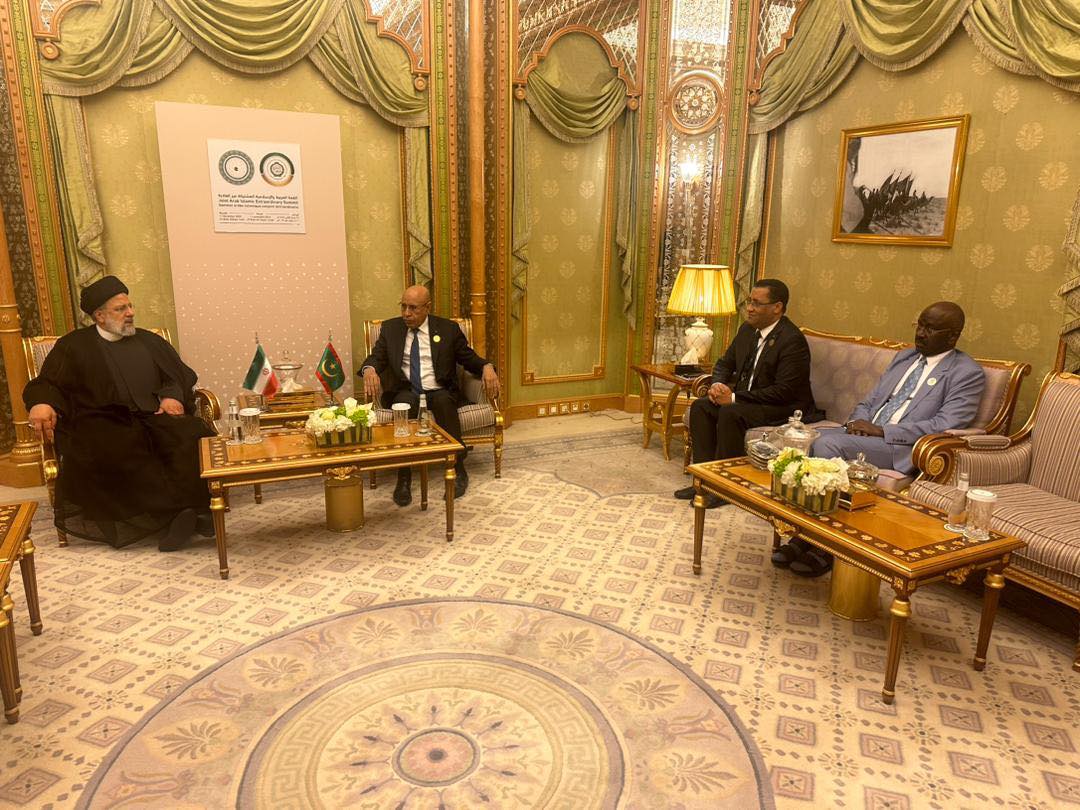 التقى الرئيس محمد ولد الغزواني، السبت، الرئيس الإيراني ابراهيم رئيسي، وذلك على هامش القمة العربية الإسلامية في الرياض.