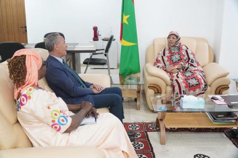 استقبلت مفوضة الأمن الغذائي، السيدة فاطمة بنت خطري، اليوم الثلاثاء بمكتبها في نواكشوط، الممثل المقيم لمنظمة الأمم المتحدة للطفولة "اليونيسيف" في بلادنا، سعادة السيد مارك لوسيه.
