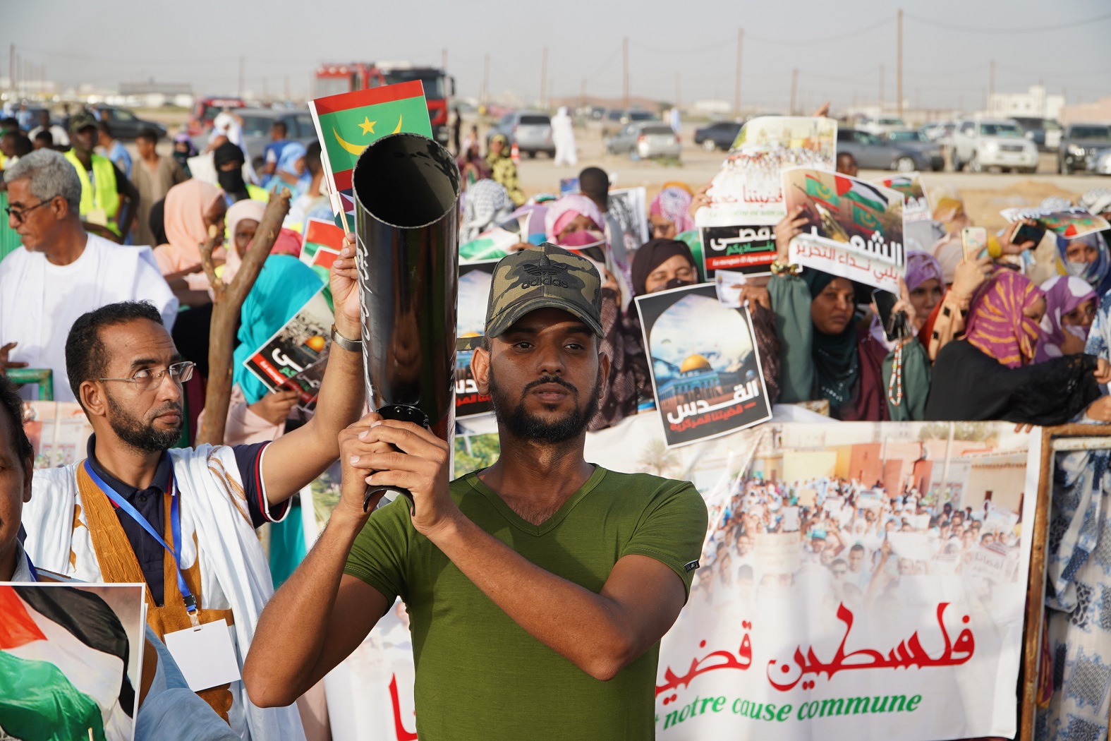 ورفع المشاركون في المهرجان الأعلام الموريتانية والفلسطينية، وهتفوا دعما للمقاومة وحركة (حماس).
