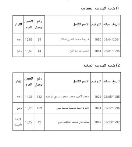 وكشفت النتائج نجاح 5 مترشحين فقط في المسابقة، 2 منهما في مجال الهندسة المعمارية و 3 في الهندسة المدنية أحدهما في لائحة الانتظار.
