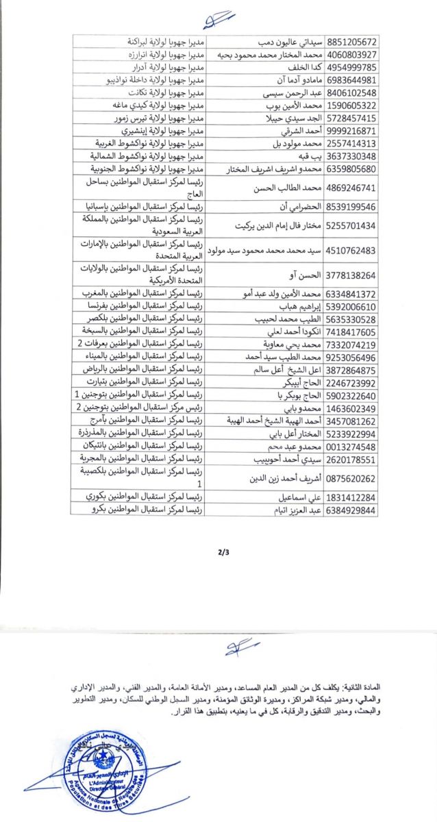 وتضمنت المذكرة تعيين رؤساء المراكز في كافة الولايات وبعض المقاطعات، إضافة إلى مراكز الوكالة في السعودية والإمارات وإسبانيا والولايات المتحدة الأمريكية وفرنسا والمغرب .