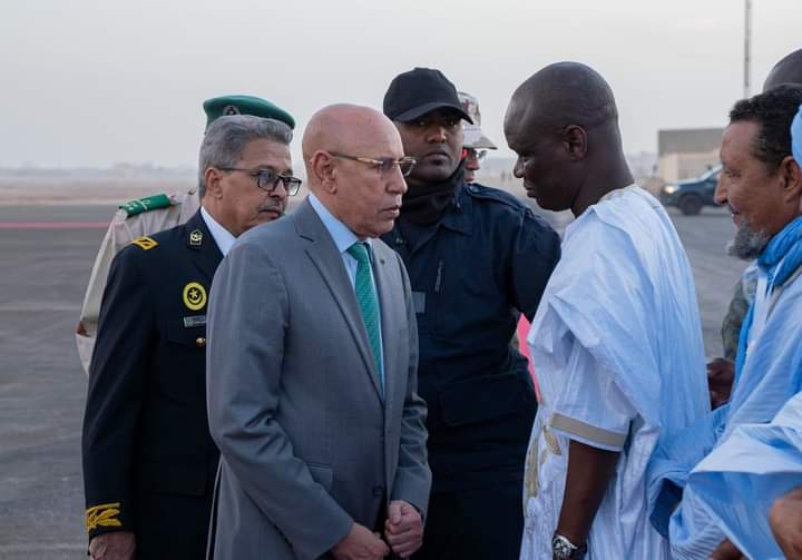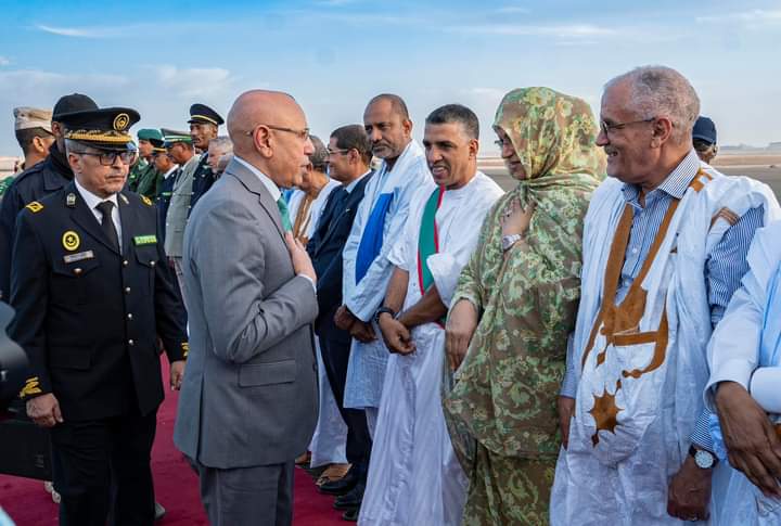 وكان في استقبال فخامة رئيس الجمهورية، عند سلم الطائرة، والي داخلت نواذيبو السيد ماحي ولد حامد، وقائد المنطقة العسكرية الأولى العقيد احمدو ولد الصايم، ورئيس سلطة منطقة نواذيبو الحرة السيد باه عبد الله ممدو، ورئيس المجلس الجهوي لداخلت نواذيبو السيد محمد المامي ولد أحمد بزيد، وعمدة بلدية انواذيبو السيد القاسم ولد بلالي وحاكم مقاطعة أنواذيبو السيد سيد احمد ولد احويبيب ونواب الولاية.