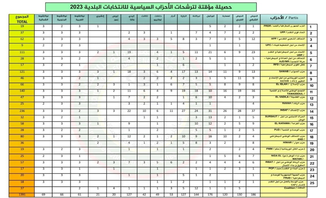وهذه قائمة ترشيحات الأحزاب في المجالس الجهوية: