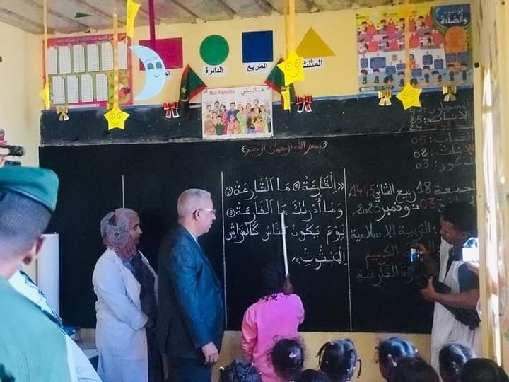 اشرف وزير التهذيب الوطني المختار ولد داهي رفقة والي ولاية ادرار وحاكم مقاطعة أطار وعمدتها والسلطات الادارية والامنية والمديرة الجهوية للتعليم علي فعاليات رفع العلم من المدرسة رقم 3 باطار صباح اليوم .