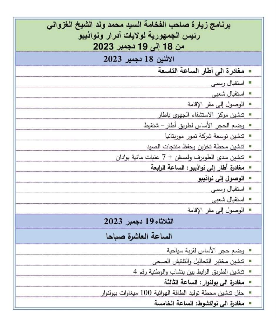وحسب ذات المصادر فإن غزواني سيبدأ زيارته الاثنين 18 من مدينة أطار .