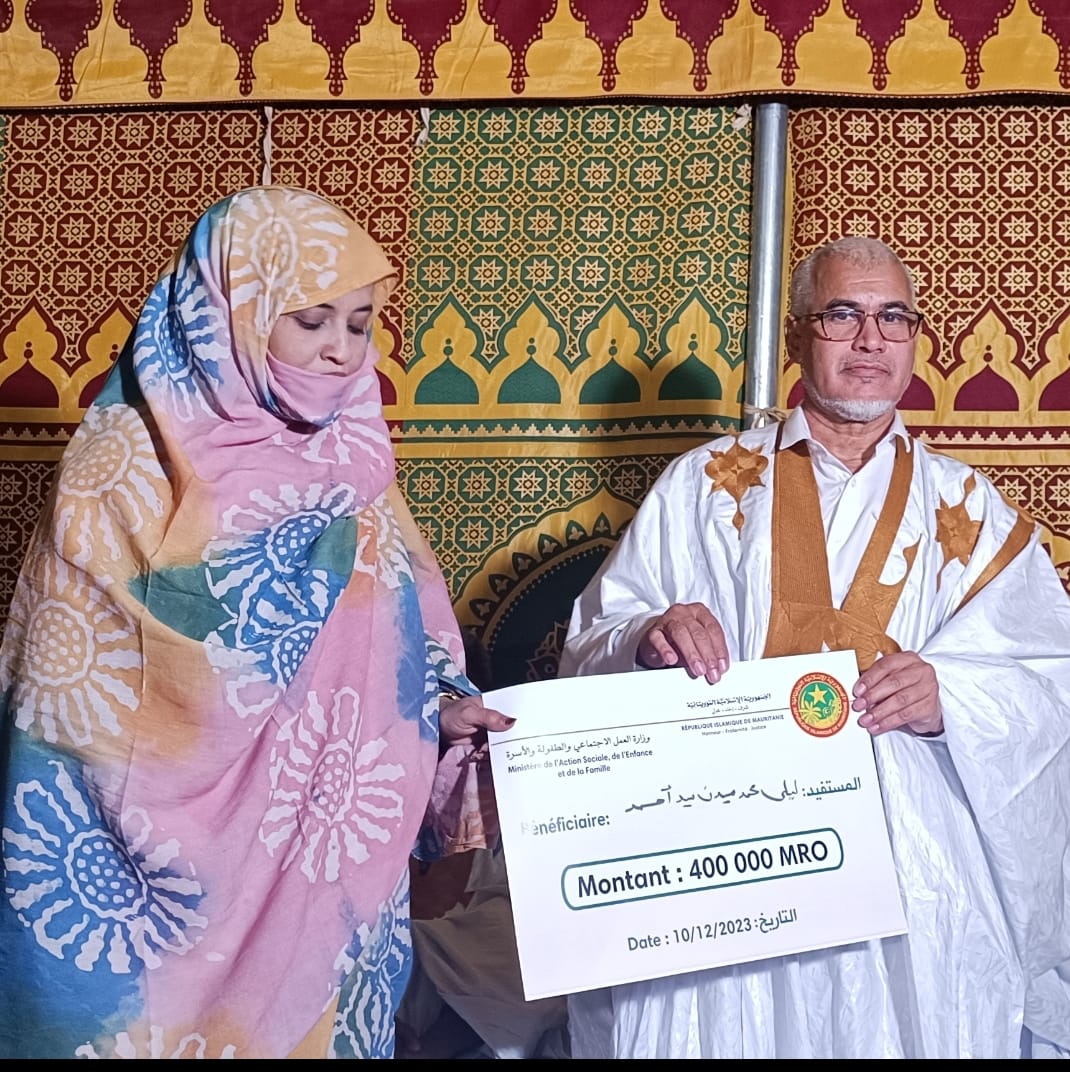اشرفت معالي وزيرة العمل الاجتماعي والطفولة والأسرة السيدة صفية منت انتهاه، ليلة البارحة في مدينة أطار، صحبة والي آدرار السيد عبد الله ولد محمد محمود، على تكريم بعض التعاونيات النسوية في إطار اختتام فعاليات معرض تمكين المرأة المنظم تحت شعار التعاونيات النسوية بوابة النجاح المستقبلي وثراء الإنتاج المحلي.
