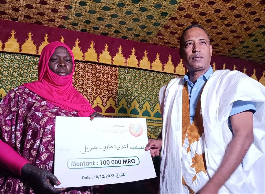 وتم خلال الحفل توزيع جوائز نقدية تتراوح مابين خمسمائة الف اوقية قديمة، ومائة الف اوقية قديمة، لصالح 13 تعاونية نسوية ناشطة في مجال الصناعة التقليدية والزراعة والصباغة والخياطة على عموم بلديات مقاطعة أطار، كما تخلل الحفل الاستماع إلى نشيد تمكين المرأة، ووصلة مديحية واسكتشات تعالج قضايا خطورة التسرب المدرسي للفتيات.