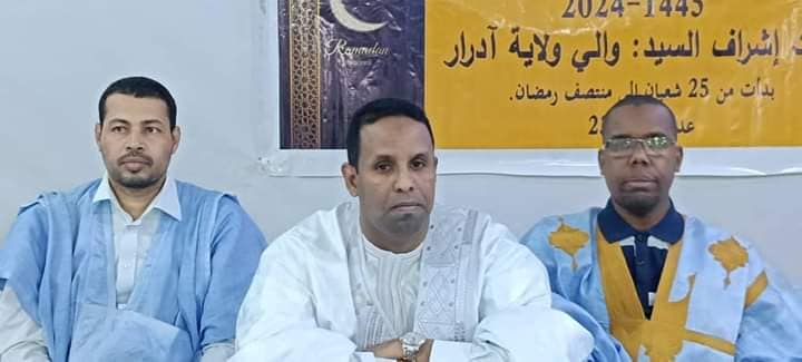 أشرف الوالي المساعد لولاية آدرار السيد سيداتي ولد القطب رفقة حاكم مقاطعة أطار السيد مولاي اسماعيل المرتجى على اختتام النسخة الرابعة من المسابقة القرءانية للإحياء الرمضاني المنظمة من طرف رابطة شيوخ المحاظر بولاية آدرار بالتعاون مع المندوبية الجهوية للشؤون الاسلامية و التعليم الأصلي بآدرار ،و حصل الفائزون في المسابقة على شهادات تكريمية و جوائز مالية .