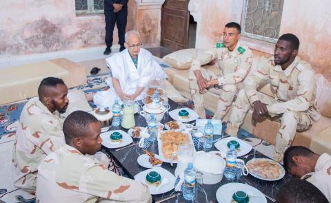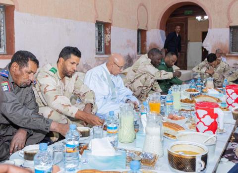 عاد رئيس الجمهورية السيد محمد ولد الشيخ الغزواني إلى نواكشوط الليلة البارحة قادما من مدينة بير أم أكرين بولاية تيرس الزمور، بعد أن شارك مجموعة من الجنود وضباط الصف والضباط إفطارهم الرمضاني.