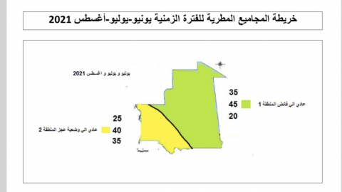 - المنطقة2: تشير التوقعات إلى أن الأمطار ستسجل وضعية اعتيادية تميل للعجز خلال هذه الفترة في المنطقة2، جنوب شرق الحوض الشرقي، والحوض الغربي، وجنوب غرب لعصابه، و تكانت وكيدي ماغه، وكوركول، ولبراكنه واترارزة، ونواكشوط.