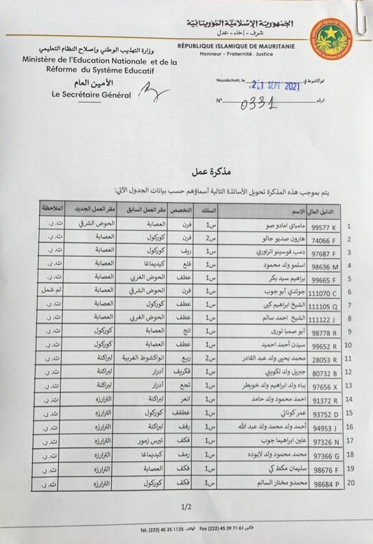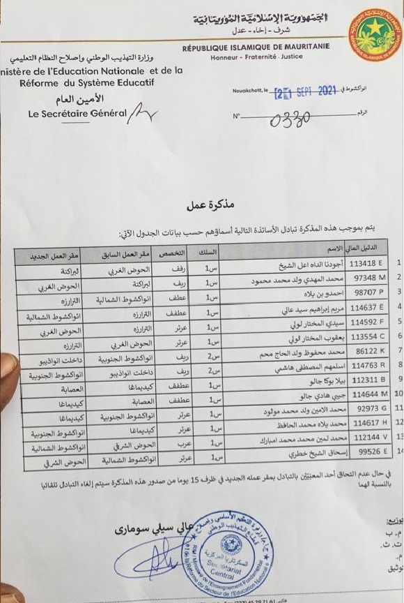 نشرت وزارة التهذيب الوطني لوائح الأساتذة الذين تم تحويلهم إلى الداخل ،وضمت اللوائح عددا من الأساتذة تم توزيعهم على عدد من الولايات بالداخل. وجاء ذلك على النحو التالي: