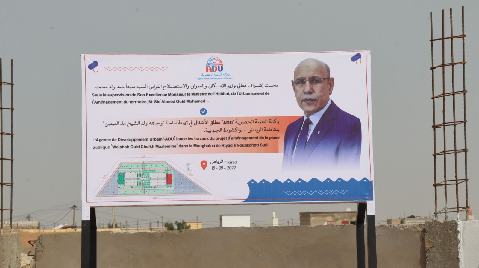 أشرف وزير الإسكان والعمران والاستصلاح الترابي السيد سيدى أحمد ولد محمد أمس الخميس بمقاطعة الرياض في ولاية نواكشوط الجنوبية على وضع حجر الأساسي لانطلاقة الأشغال بمشروع تهيئة ساحة وجاهة ولد الشيخ ماء العينين.