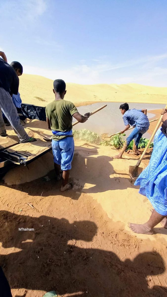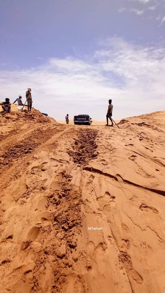يواصل منتسبي مبادرة معبر "التيزيكي " الشيخ محمدو الشيخ العالم رحمه الله تعالي التطوع من اجل فتح الطريق والاسهام المستديم في تنمية بلدية المداح .